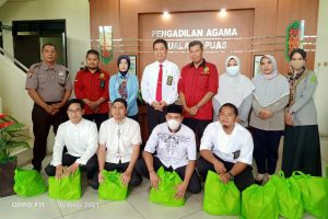 Selasa, 11 Mei 2021, pukul 15.00 WIB Ketua Pengadilan Agama Kuala Kapuas Muhamad Isna Wahyudi, S.H.I., M.S.I. bertempat di lobby depan kantor Pengadilan Agama Kuala Kapuas melaksanakan kegiatan pembagian bingkisan lebaran kepada seluruh PPNPN Pengadilan Agama Kuala Kapuas, yang berjumlah 10 orang.